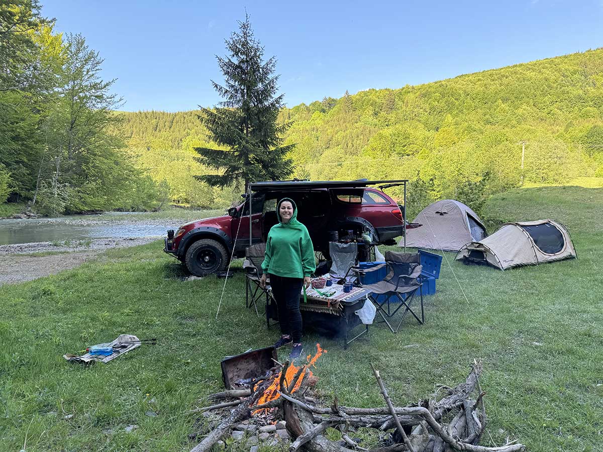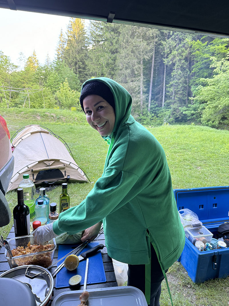Camp is a luck out, we have a river the wraps around camp, now I will say it is still somehow freezing out, so we definitely require a fire to stay warm, but overall its okay. Dinner was Asarehs famous Saffron chicken. And we stay up enjoying a few drinks while Pina enjoys playing the in the tent fly on Suzies tent. We only has a small amount of rain.