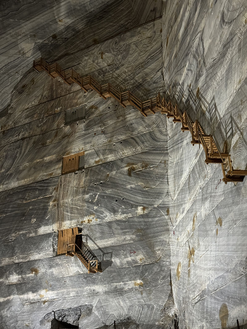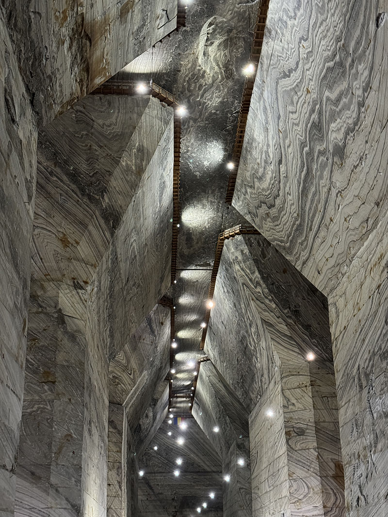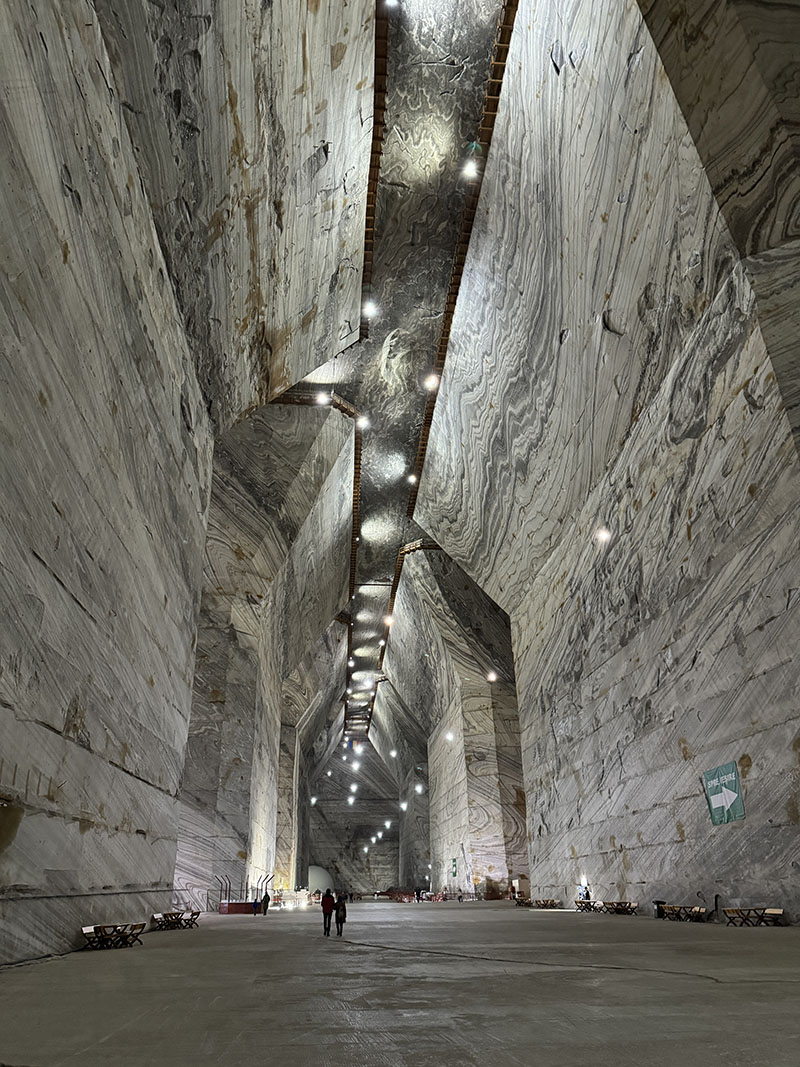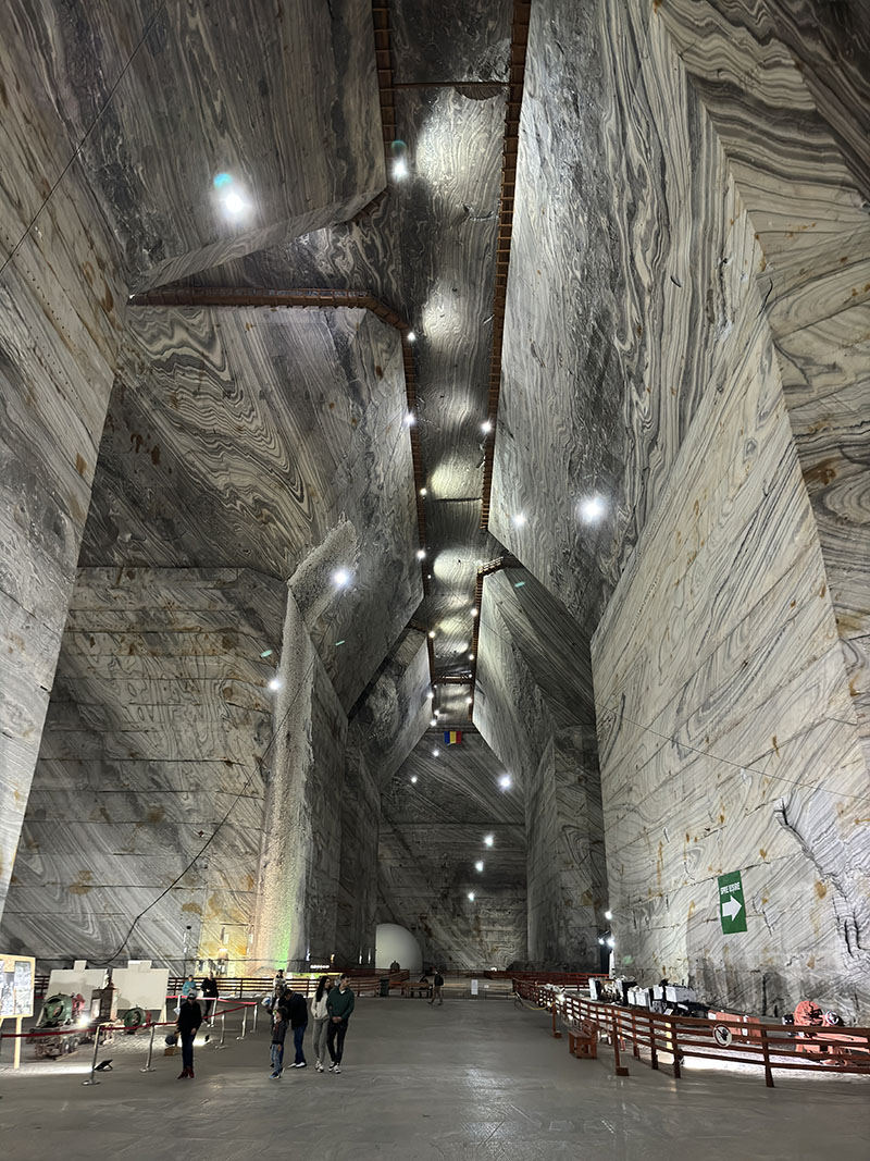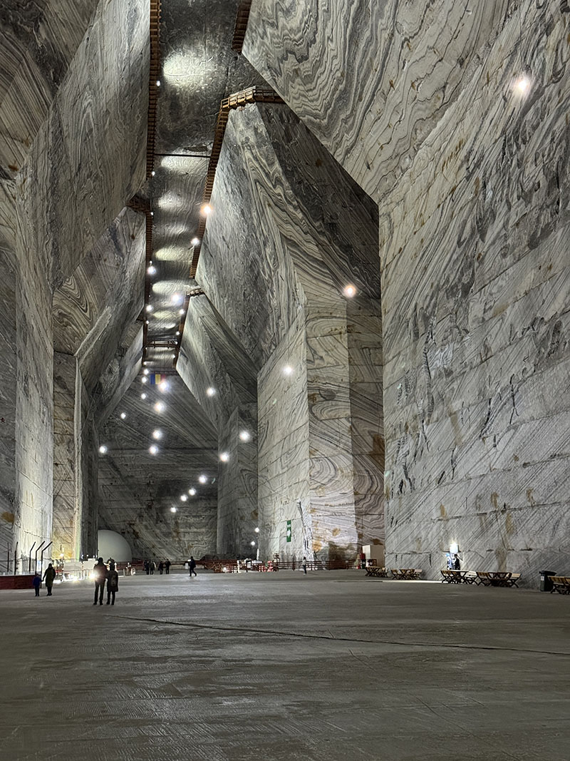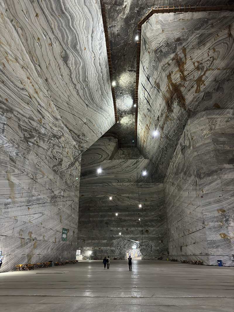 You walk though the portal into a massive hall, over 200m long, 54m high. Walls made of, you guessed it, salt. This is pretty much a look at these phots type setup, you have to see it yourself to understand the immense size.